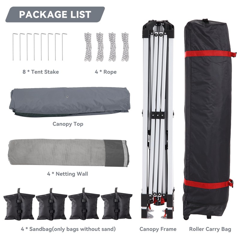 - [Very Easy Installation] -- Patented one-push center lock technology allows for easy setup by two people in seconds without any tools, ensuring stable and secure installation. Includes 4 weight bags, 8 ground nails for stability in windy conditions.