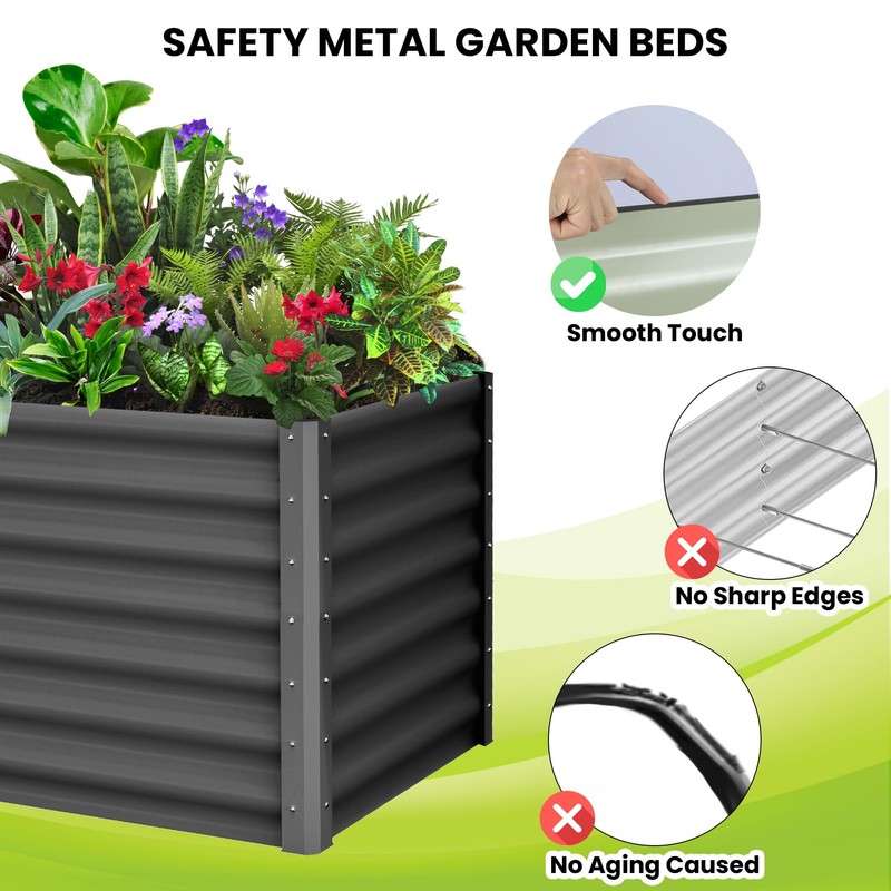 - UPGRADED QUALITY AND CONSTRUCTION: This outdoor raised garden bed is made of durable galvanized metal with double anti-corrosion protection. The rectangular structure design is beautiful and elegant, and the interface can withstand high pressure to ensure that it will not loosen in the long term