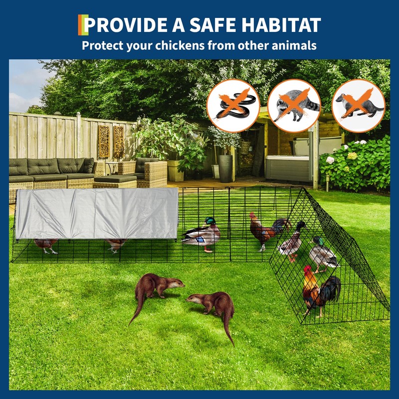 - Effortless Assembly & Portability: This metal chicken pen is built for quick and easy assembly, complete with clear instructions and all necessary accessories. Lightweight yet sturdy, it's a portable chicken tractor perfect for moving your flock while maintaining security and comfort