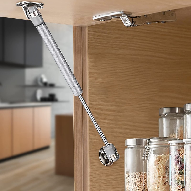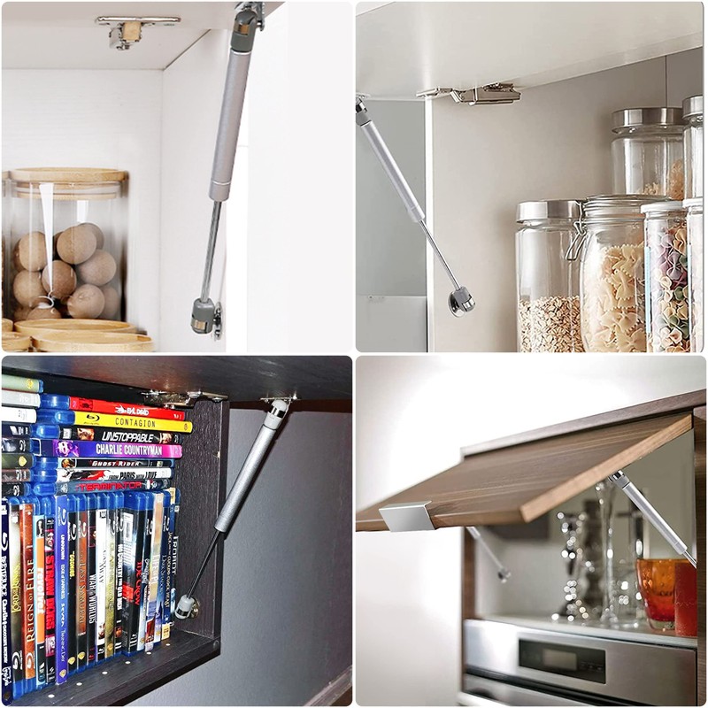 - Wide Applications Hydraulic support automatic telescoping suitable for most types of upper cabinets, bookshelves, wardrobes, boxes and other upside down brackets, allowing the door to be opened slowly with comfortable damping.