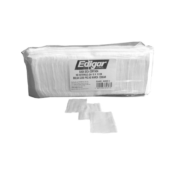 Gasa No Esteril 10x10 Edigar 200 Pzas Paquete