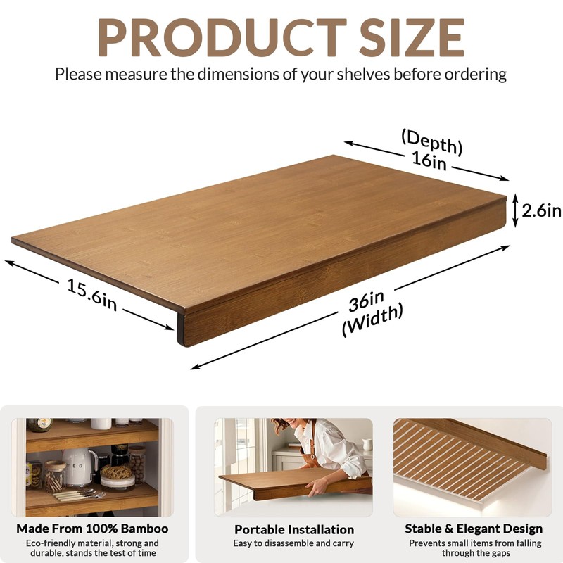 • Premium Bamboo Wire Shelf Cover: Crafted from high-quality bamboo, our durable wire rack cover enhances any space with its natural wood grain. Perfect for pantry, closets, and wire shelving - blends beautifully with all decor styles.