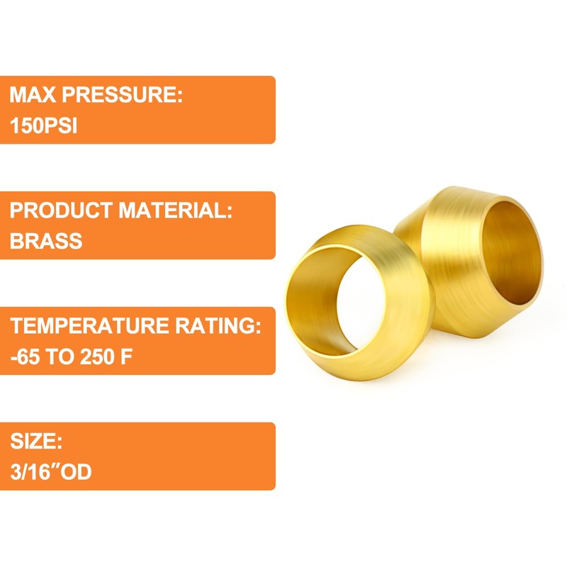 - Package Include:3/16" OD 100PCS Brass Compression Sleeve Ferrules