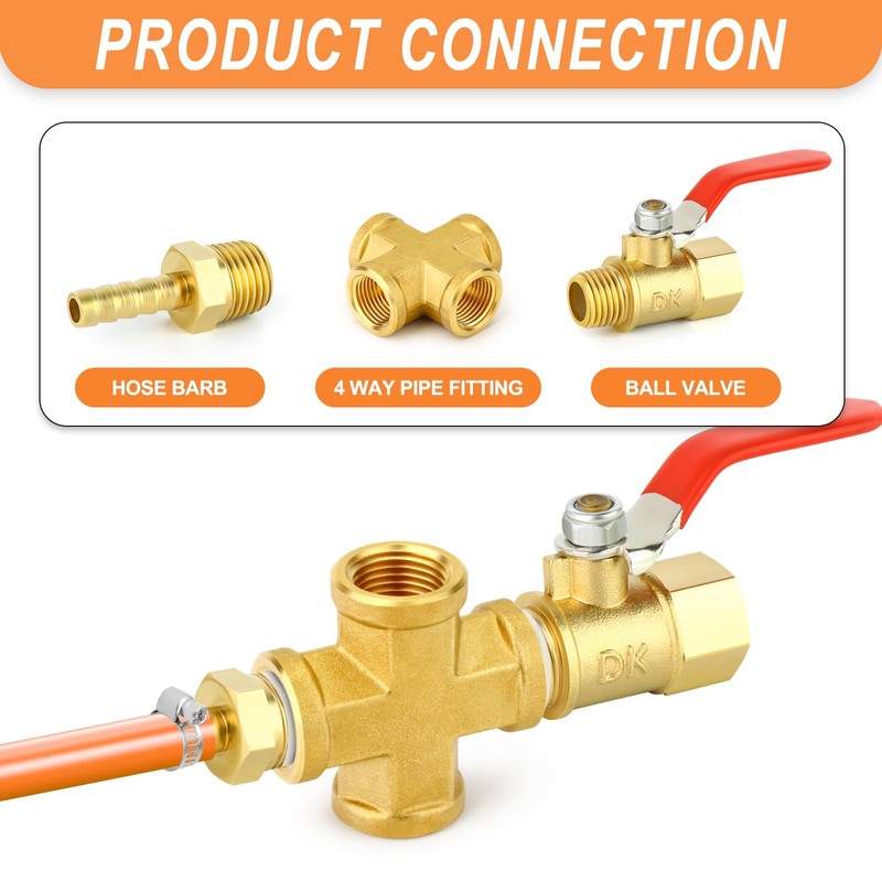 - NOTICE: Before using ball valves and other connecting products, wrap proper amount of teflon tape to prevent air leakage.
