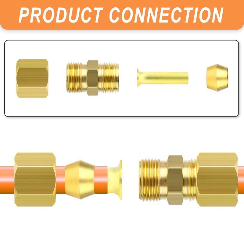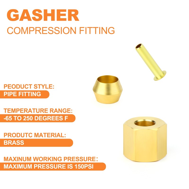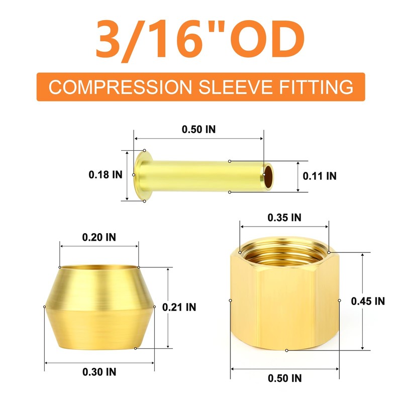- Package Include:20 x 1/8" OD Brass Compression Insert,20 x 5/16" OD Brass Compression Sleeve Ferrules,20 x 5/16" OD Brass Compression Ferrule head