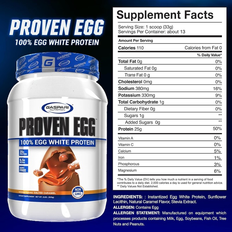 Gaspari Nutrition Proven Egg, 100% Egg White Protein, 25g Protein, Keto Friendly, Dairy Free, Lactose Free, Soy Free (1lb, Peanut Butter)