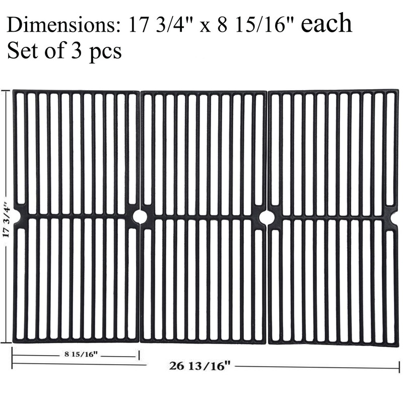 GasSaf Grill Grates Replacement for Brinkmann 810-2410-S,810-2511-F,810-9415-W,810-7490-F, Charmglow 810-8410-F, Browning, Grillada & Others, Set of 3 Cast Iron Cooking Grate(17 3/4" x 8 15/16" each)