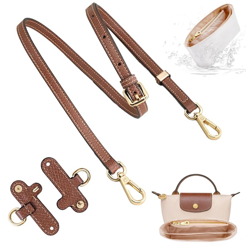 Gastinsave 2-Pack Purse Straps Kit Replacement with Multi-Pocket Waterproof Handbag Organizer Insert Compatible with Mini Longchomp Tote Bag