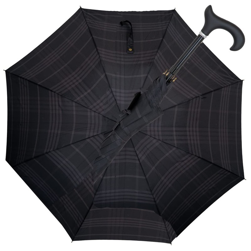 - Long automatic support umbrella with elegantly curved L-Derby handle made of soft acetate, with brass ring. Umbrella roof in grey-anthracite. 60 cm / 8-piece, 14 mm sturdy frame with rubber buffer.
