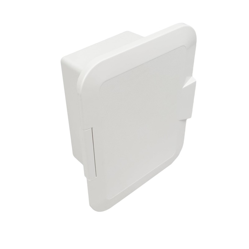 - Non-slip hinged lid and 180° opening for quick and convenient use, completely covers the mounting flange. Wire closure with the wall