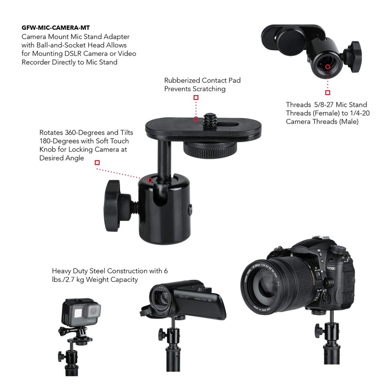 • Allows for Mounting DSLR Camera or Video Recorder Directly to Mic Stand Threads