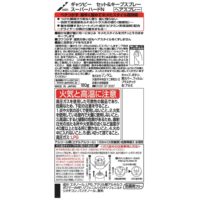 GATSBY (ギャツビー) セット&キープスプレー スーパーハード 180g