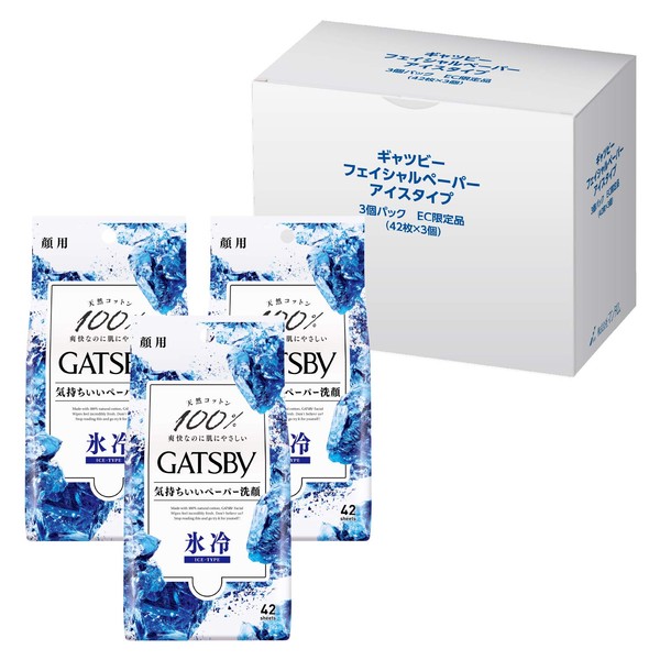 GATSBY Facial Paper, Ice Type, Refreshing Facial Sheet, Men's, Fresh Aqua Scent, Set of 42 Sheets x 3 Packs