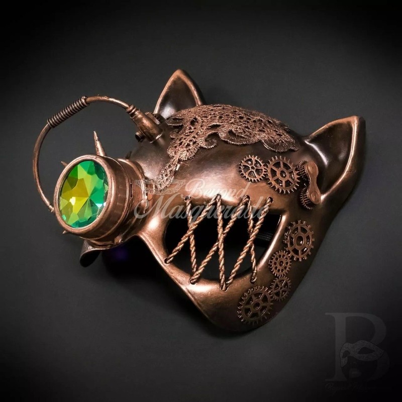 Gatto Cat Steampunk Goggle Mask Copper M39572