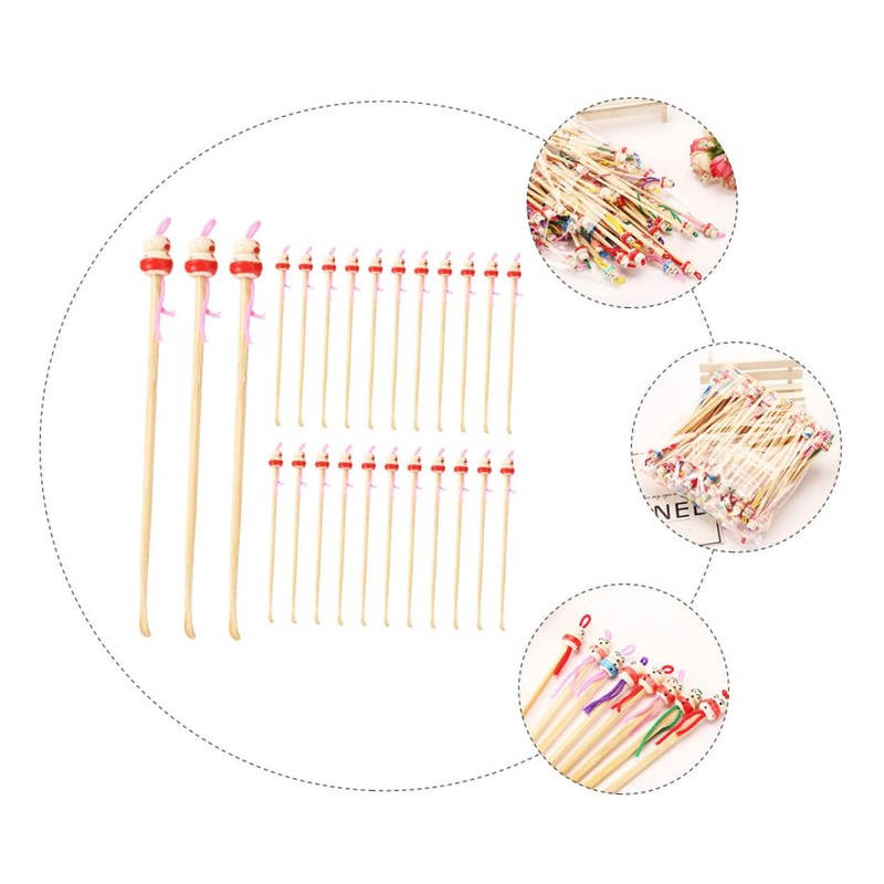 - Portable ear tool: ear wax picker - bamboo ear cleaner wood ear bamboo ear pickers ear cleaning tools for humans bamboo ear cleaner cute doll bunny goose earpick for adults ear cleaning kit these ear tools are round and smooth, can ensure the ear canal comfort, and will not hurt your ears.