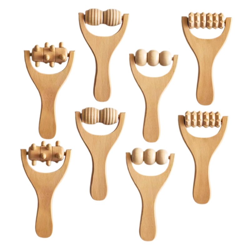Gatuida 8pcs Wooden Massage Tools Ergonomic Foot Shoulder Neck Back Massager Rollers Natural Wood Material for Relief Circulation Portable Home
