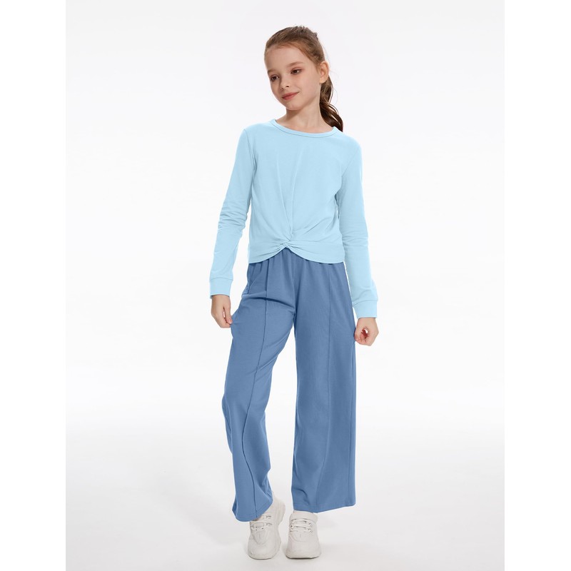 - Design: The teen girl trendy clothes light blue long sleeve top features a classic crewneck and a unique twist design, the dark blue wide-leg pants in girls outfits feature an elastic waist for a comfortable fit ideal for all girls