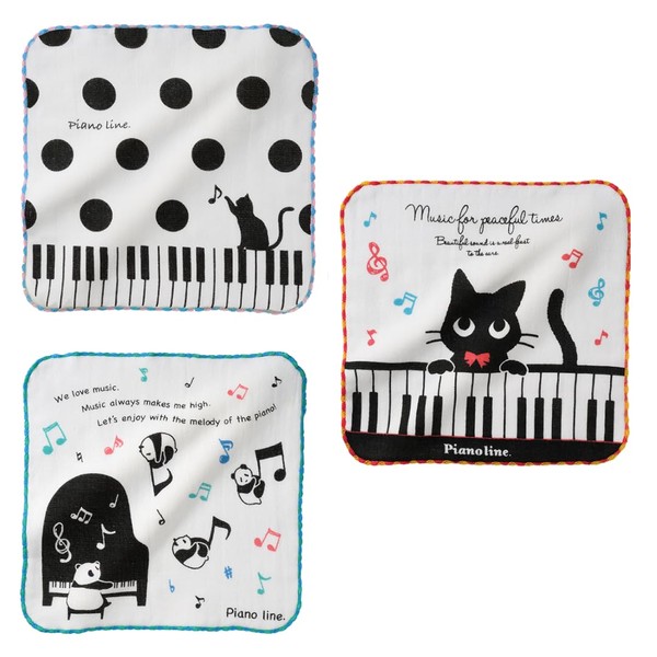 Gauze, Handkerchief, Cat Musical Notes, Piano, Panda Pattern, Set of 3, Comes Gift Wrapped, Perfect as a Gift