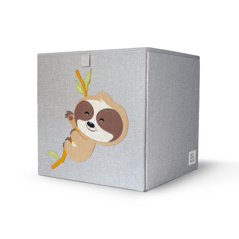 Gav & Griff E. Bear Co. Sloth Storage Cube, Box, Organizer, Container, Bin, 13 inch Kids Cubby, Sloth Design 3 Grey