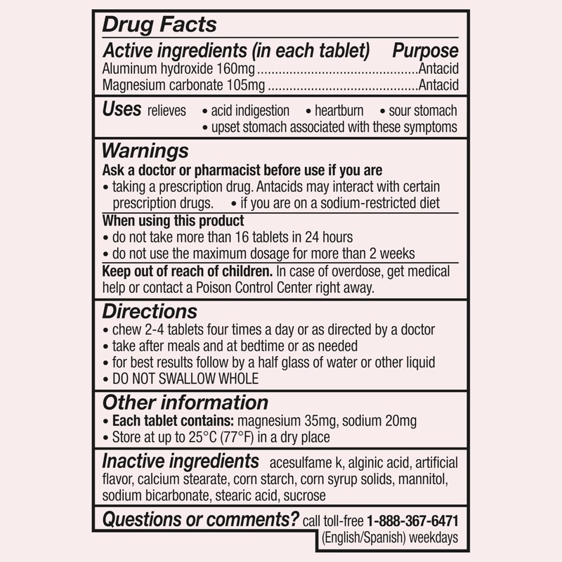 - Relieves heartburn, sour stomach, acid indigestion, and upset stomach associated with these symptoms