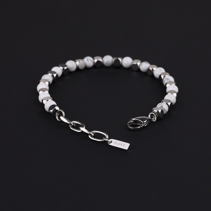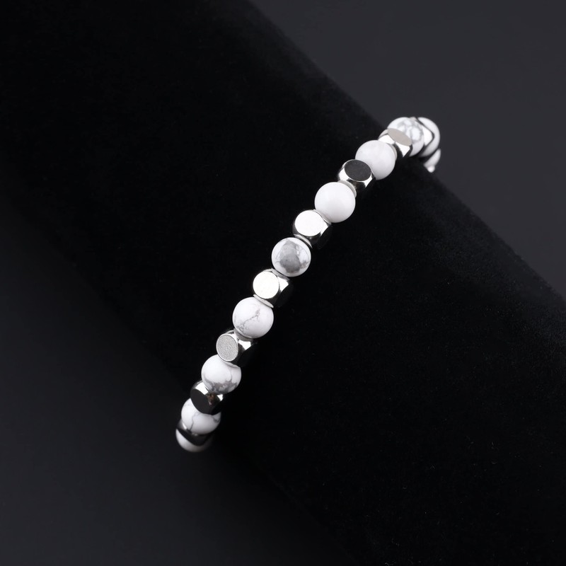 - High-quality material: 6 mm white howlite and 5 x 5 mm stainless steel beads