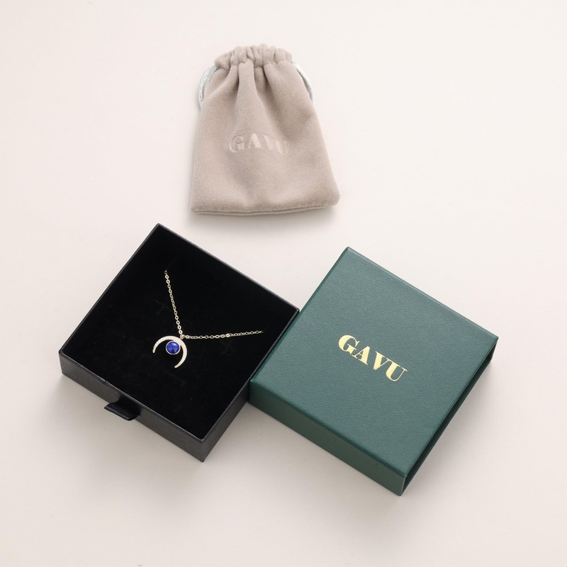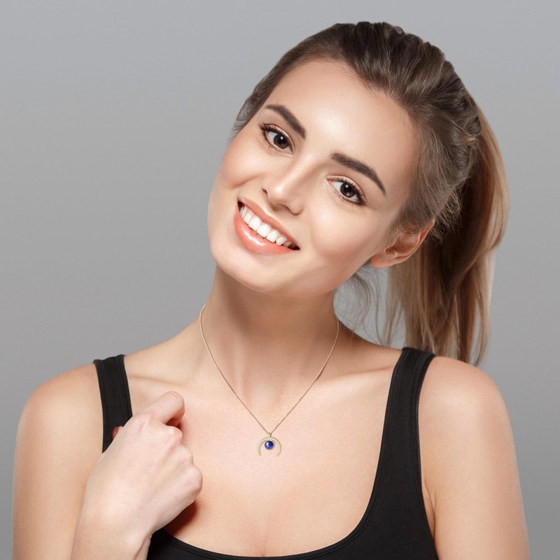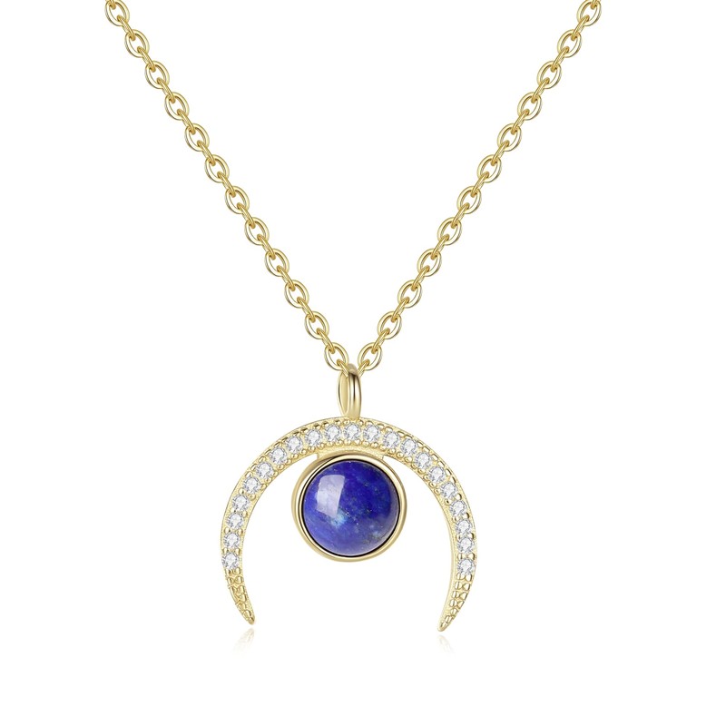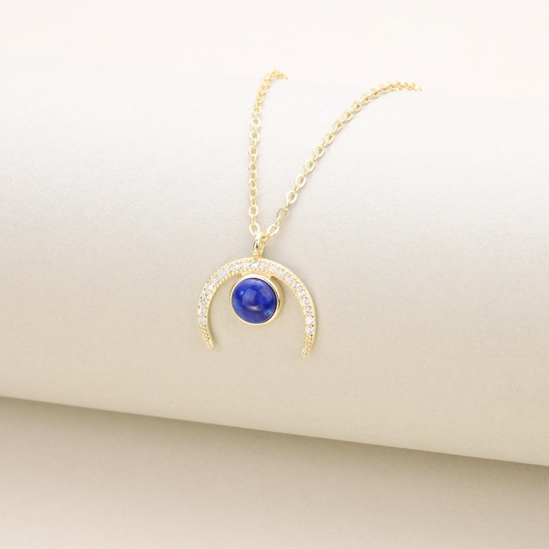 GAVU Women's Necklace with Crystal Moon Pendant, Stone, Lapis Lazuli