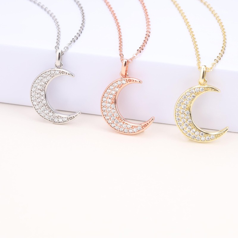 - Material: necklace with moon pendant with zirconia 17 x 15 x 2 mm, made of rose gold 925 sterling silver