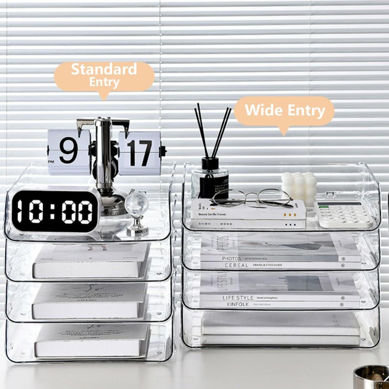 - Paper Organizer with standard entry, easy to stack, no assembly required and get extra desk space