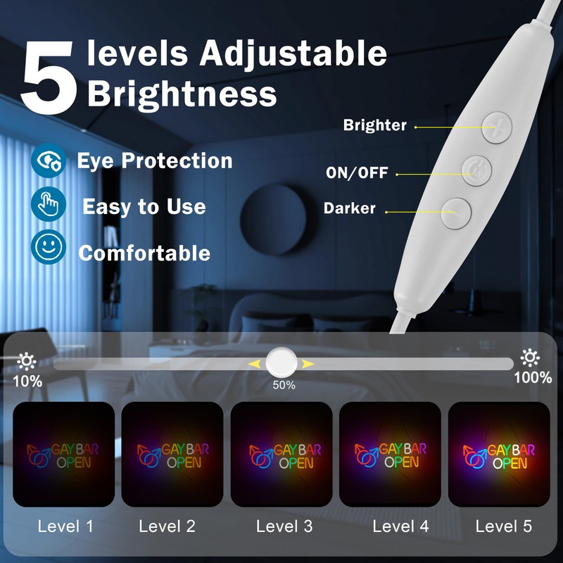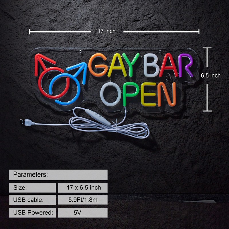 Gay Bar Open Neon Sign for Wall Décor Dimmable LED Neon Light USB Powered Neon Art Signs Decor