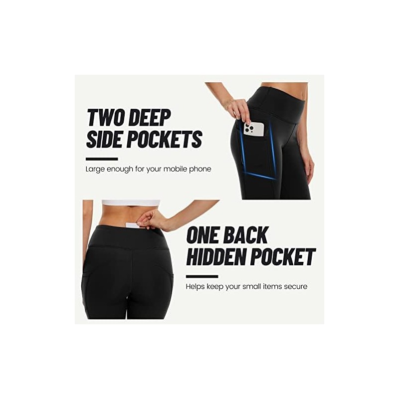 - 2+1 POCKETS: These workout leggings are equipped with two side pockets and one waist hidden pocket, which allow easy access to your belongings including your smartphone, wallet, or car keys. The pockets keep all personal items safe and you can fully focus on your exercise.