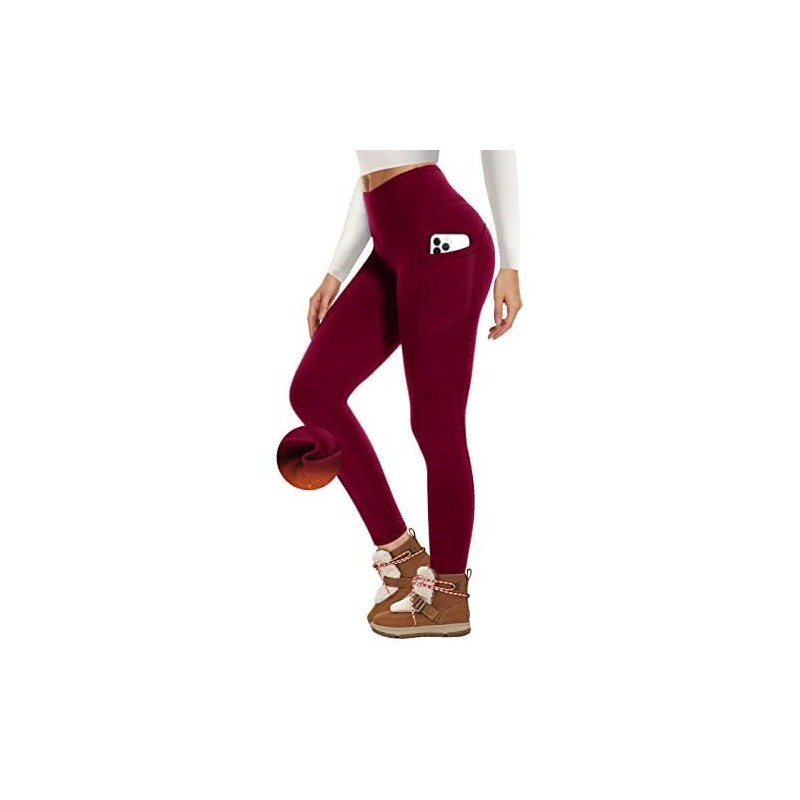 GAYHAY Fleece Lined Leggings with Pockets for Women - High Waisted Yoga Pants Winter Warm Workout Leggings Reg & Plus Size Ruby Wine