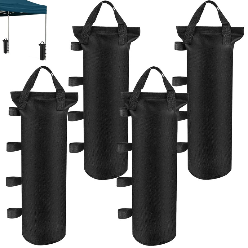 Gazebo Sandbags Pack of 4, 15 x 50 cm Gazebo Weights, Oxford Sandbag Weighting, Sandbags Base with Long Belt, for Camping Tents, Parasols, Black
