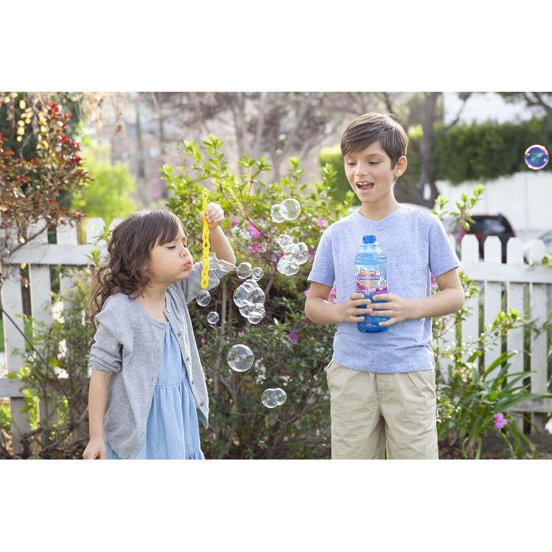 Giant Gazillion Bubble Solution has been formulated to create bigger bubbles than ever before! This extra-special solution was crafted in a lab to create bigger; more elastic bubbles than any other formula so you can create truly GIANT bubbles. Each 1 Liter bottle of Giant Gazillion Bubble Solution comes with a specially designed bubble wand and works with any Giant Gazillion Bubbles product. This premium solution is ; safe; non-toxic; and will not stain clothing or furniture. With Giant Gazillion Bubbles; you'll run out of breath before you run out of bubbles! Appropriate for ages 3 years and up.