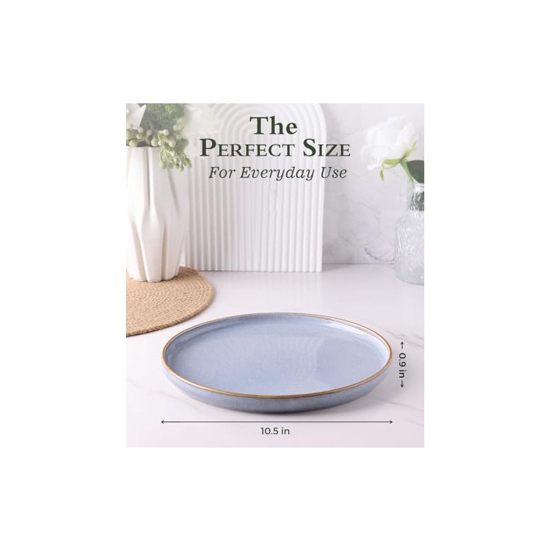 - MODERN&HUMANIZED DESIGN: these dinner plates set creates a gorgeous individual shape and minimalist table setting. these plates set also are wonderful because the slight ridge on the edge which keeps any sauces/condiments on the plate instead of going off the edge then you'll never have to worry about things like gravy or dressings from spilling over the sides.