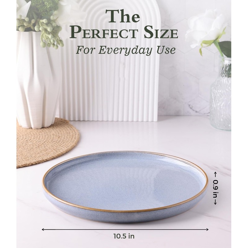 - MULTI-PURPOSE AND DURABILITY: The Diameter 10.5Inch ,depth 0.9 inch, This large dinner plates is suitable for serving steak, pasta, pizza, seafood and other main course or fruit, perfect for daily use or party purpose.The plates set is microwave,dishwasher and freezer safe.Please note dark marks may occur on some certain silverware, which are not scratches, but metal residue marks.those metallic stains can be removed.
