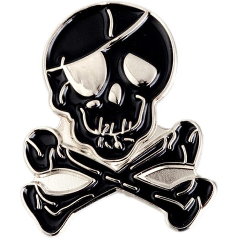 - Style: skull and crossbones pin badge with Butterfly Clasp Back