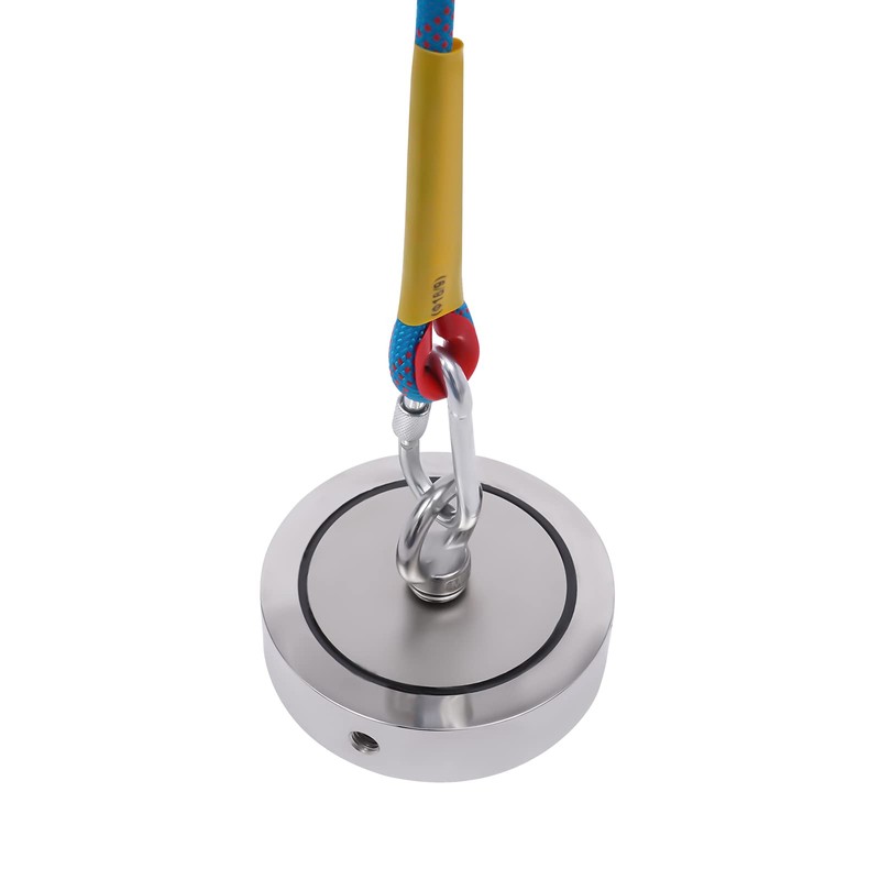 - 【Multifunctional】Because the heavy duty fishing magnet uses double-sided magnets, you can mount the ring on the flat side of the magnet so that the magnetic force for vertical salvage is stronger. You can also mount the ring on the side so that both sides of the magnet can be used for adsorption and improve fishing efficiency.