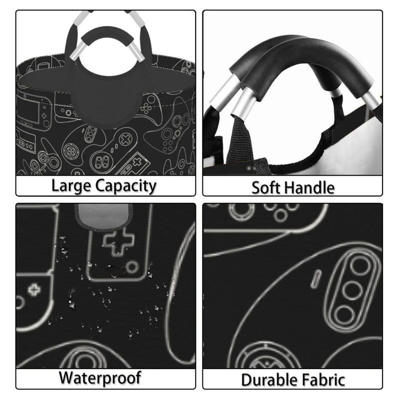 Gbuzozie Video Game Controller Black Background Large Laundry Hamper Gaming Theme Storage Basket Toys Clothes Organizer Bin For Home Bathroom Bedroom Dorm Nursery, 60l