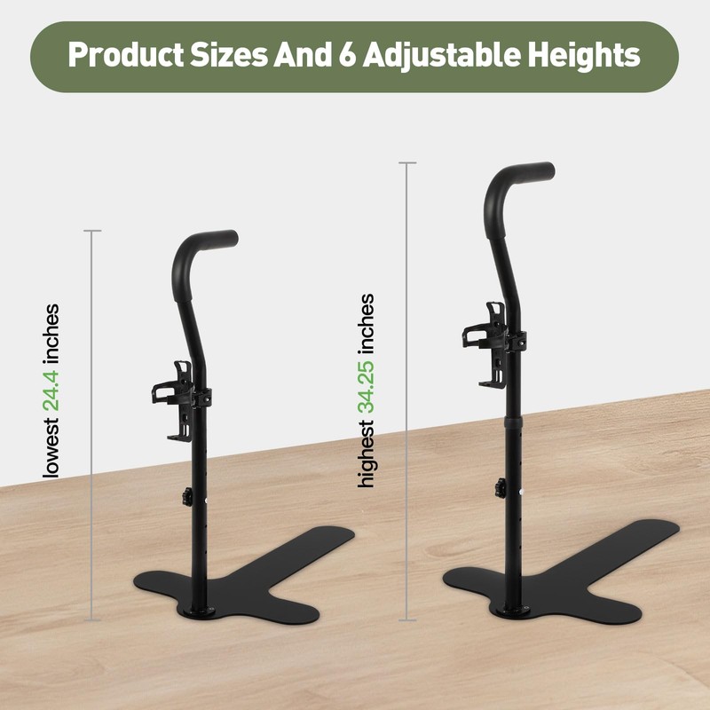 - 6-Position Height Adjustment-This chair assist for the elderly can be mounted on most four-legged chairs with a base width of 15.7 inches and base length of 24.8 inches, with the handle height adjustable from 24.4 to 34.25 inches off the floor. For compatibility with your furniture, please refer to our video and pictures.
