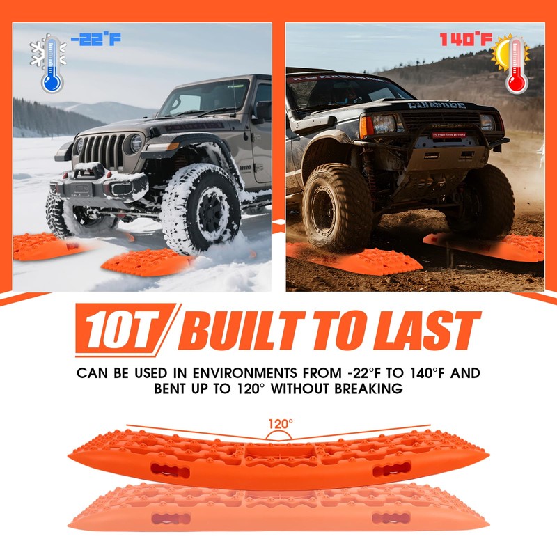 - 【Enhanced Formulation】Engineered for dependable performance across a broad spectrum of environmental conditions, the off-road traction boards are ideal for year-round application, tolerating temperatures from -30°C (-22°F) to 60°C (140°F). Crafted from reinforced automotive-grade polypropylene, these recovery boards offer flexibility, lightweight convenience, and durability
