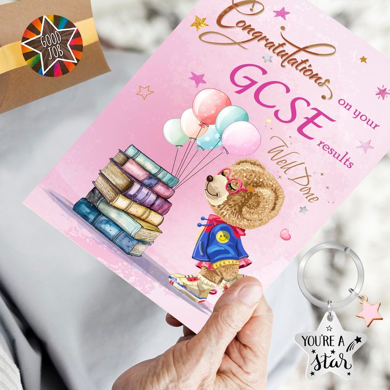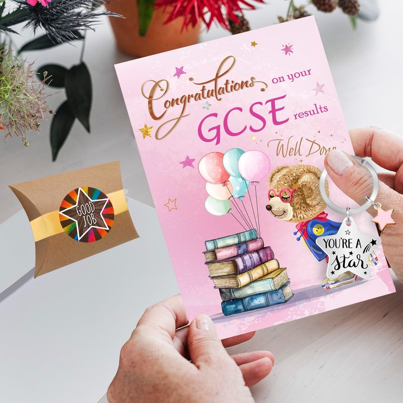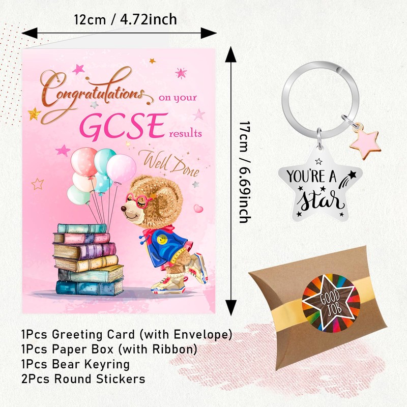 - Congratulations Passing Exams Card Gifts Kits: You will recieve 1pcs passing GCSE exam card (with envelope and sticker) + 1pcs stainless steel keyring + 1pcs gift box + 1pcs ribbon, which are perfect as passing exam gifts for daughter, granddaughter, students.