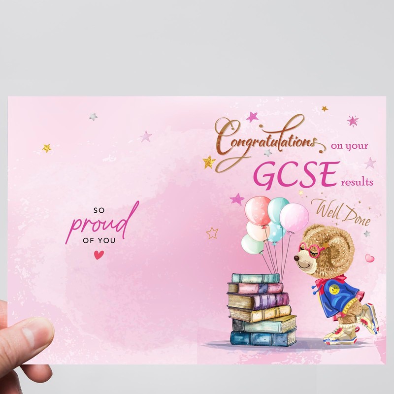 - Congratulations GCSE Exam Card: PopManko GCSE results card is made of 350GSM of high-quality coated paper, printed with various patterns, exquisite and durable. PopManko passing GCSE card have an unfolded size of 17 x 24cm (folded size of 17 x 12cm), perfect as passing GCSE exam gifts. The inside page of the greeting card is blank. You can write your blessings to students.