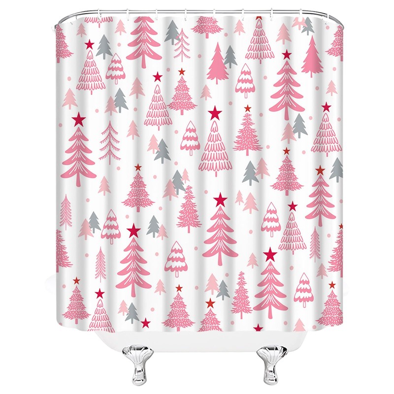 GCTNBJL Christmas Shower Curtain Pink Xmas Tree Stars Rustic Farmhouse Cartoon Winter Holiday Merry Christmas 70x70(WxH) Inches Bathroom Decor Fabric Curtain with Hooks