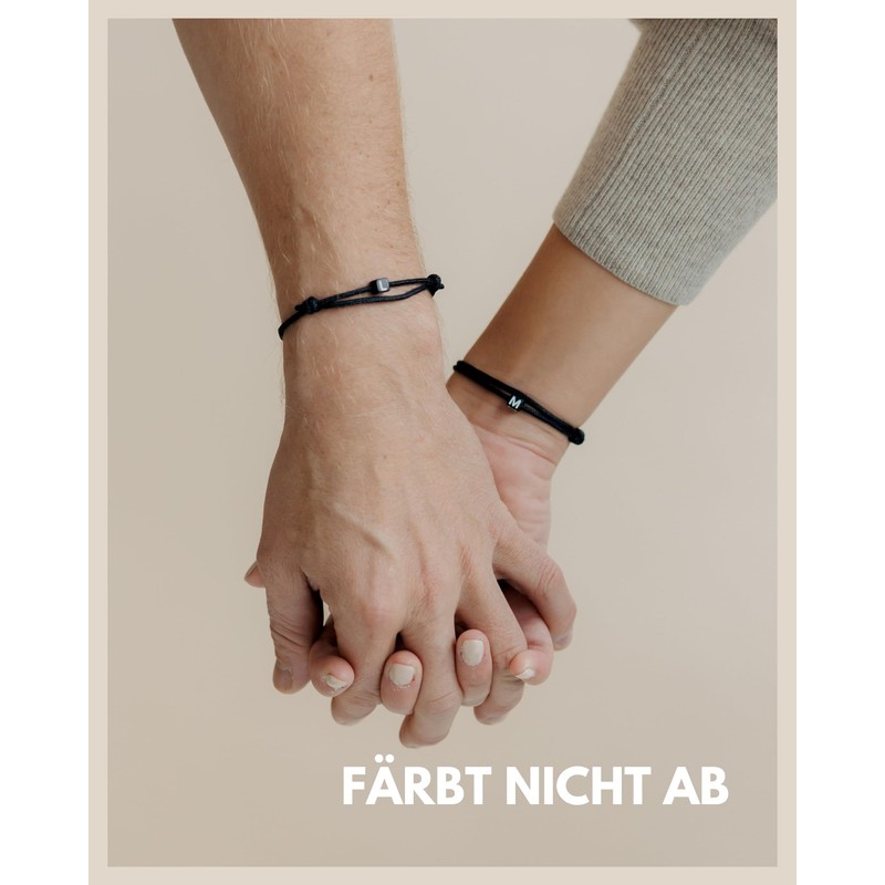 GD GOOD.designs Bracelet with Letters, Adjustable Partner Bracelet (14 cm - 25 cm) with Black Braided Rope, Polyester