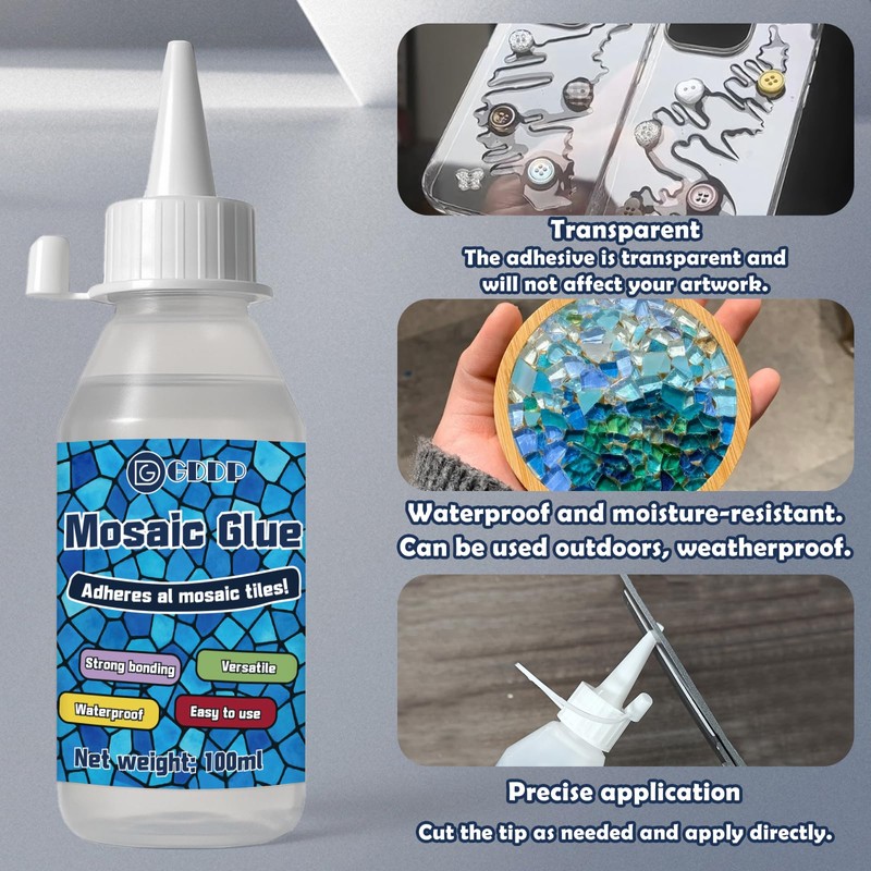 GDDP 200ml Mosaic Glue, Transparent Waterproof and Moisture Proof Mosaic Tile Glue for DIY Crafts, Suitable for Glass, Ceramic, Wood, Plastic, Indoor & Outdoor Use