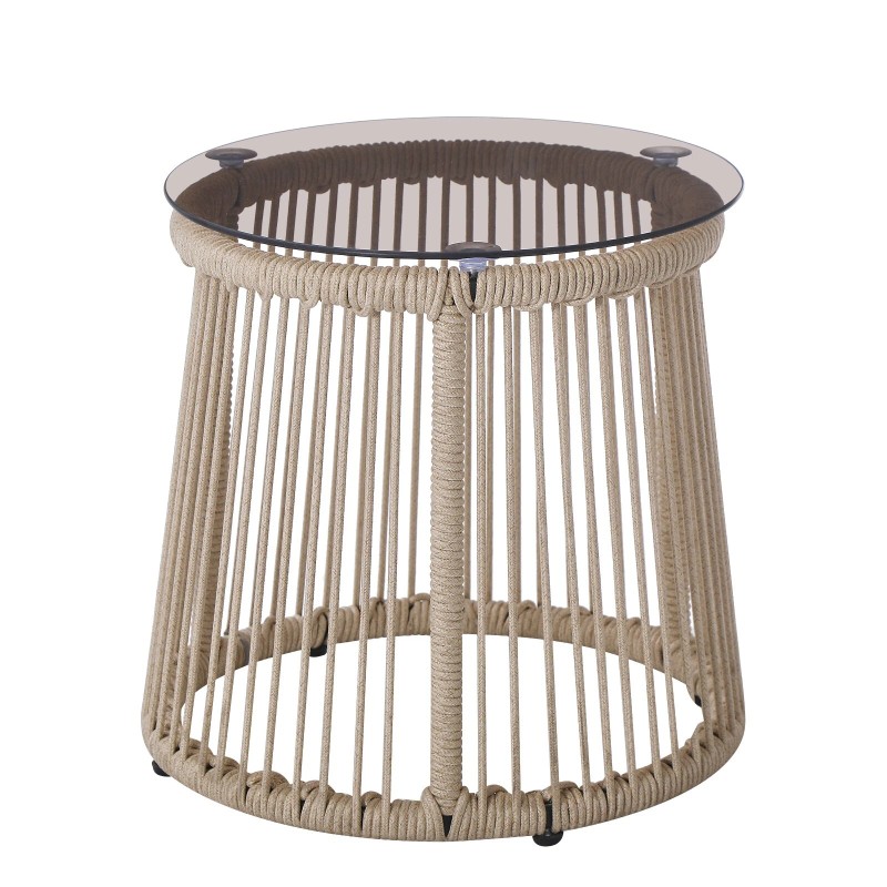 GDF Studio Outdoor Modern Patio Accent End Table Small Side Table Handwoven Rope Drum