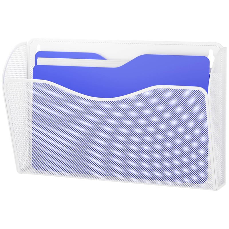 GDINDINFAN Single Pocket Wall File Holder, Mesh Hanging File Folder Paper Organizer, Vertical Wall Mounted Mail Basket, Storage Organization Magazine Rack for Office, Home and School, White