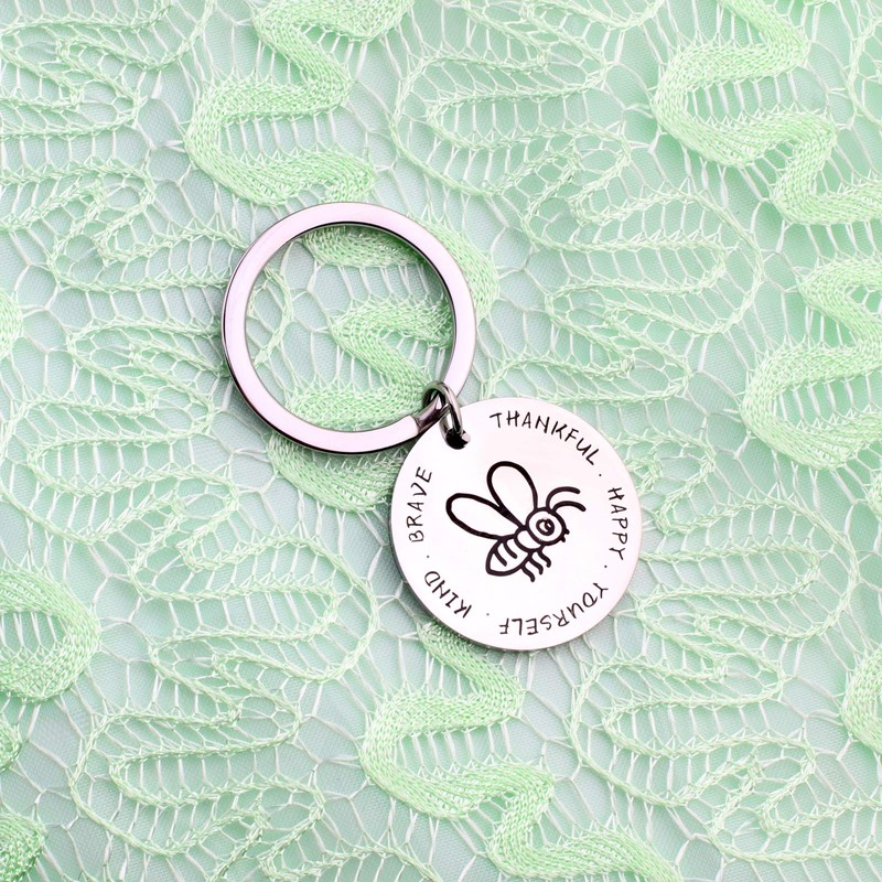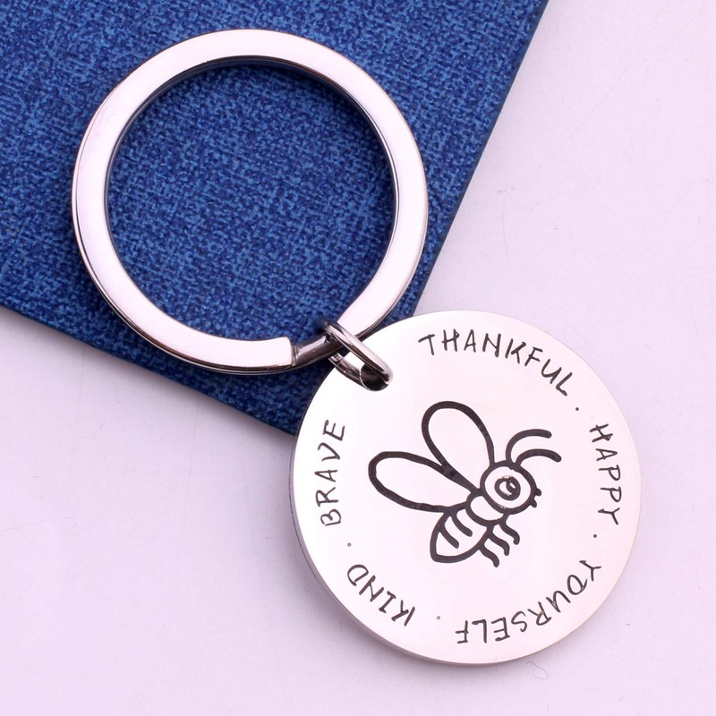 GDKASRNY Encouragement Gift Be Thankful Happy Yourself Kind Brave Bee Keychain Inspirational Jewelry Friendship Gifts (Bee Keychain)
