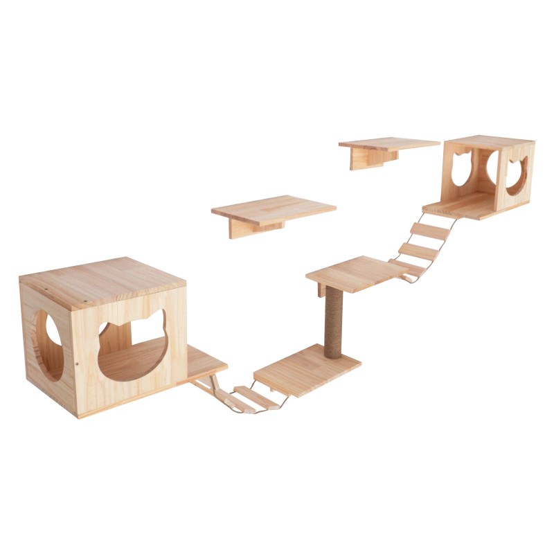 GDRASUYA10 Wall Mounted Cat Shelf Solid Wood Climbing Shelves Bed Indoor Kitten House New