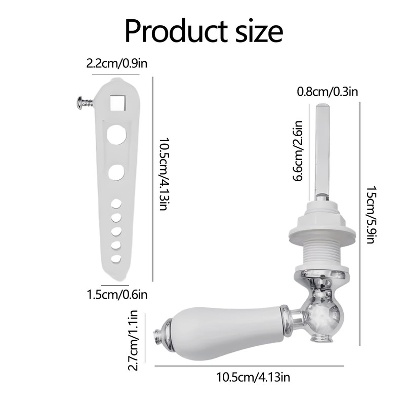 • Premium Quality Construction This toilet handle replacement is crafted from high-quality zinc alloy and ceramic materials, ensuring durability and corrosion resistance. The combination of these materials provides both strength and aesthetic appeal.